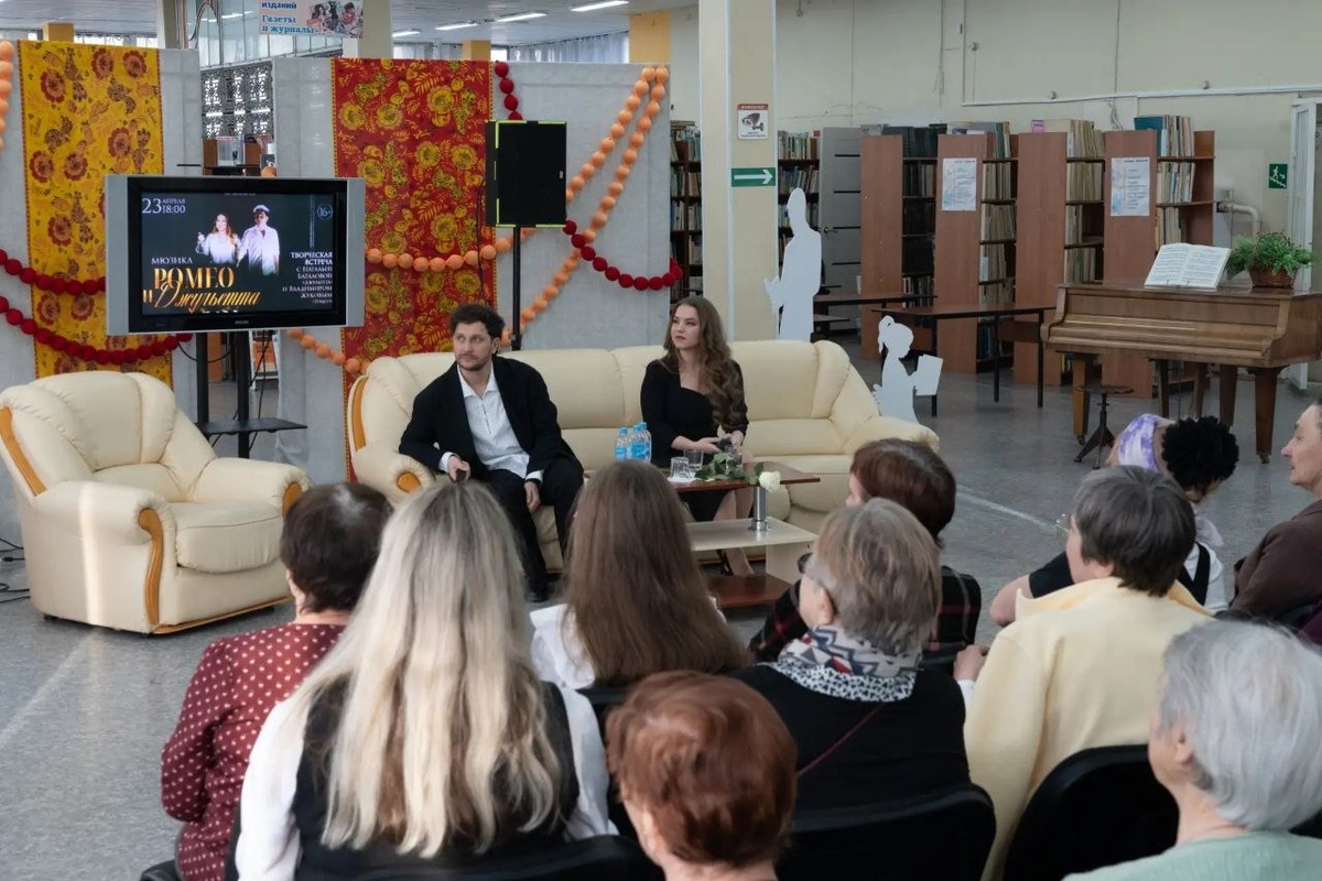 Продолжается реализация соглашения о сотрудничестве между Муниципальной информационно-библиотечной системой и Музыкальным театром Кузбасса имени А. К. Боброва. В Библиотеке им. Н. В. Гоголя состоялась творческая встреча с артистами – исполнителями главных ролей в мюзикле Кима Брейтбурга «Ромео и Джульетта». К событию в библиотеке открыли тематическую выставку, созданную совместно с театром. Здесь были представлены эскизы костюмов героев и декораций, рабочие материалы, раскрывающие процесс рождения спектакля. Выставка начала работу за несколько дней до встречи и продлится до конца апреля. Гостями вечера стали Наталья Баталова – исполнительница роли Джульетты и Владимир Жуков – исполнитель роли Ромео. В программе встречи прошли закулисные истории и секреты репетиционного процесса, которые дополнялись партиями из мюзикла. Состоялся разговор о современном прочтении вечной истории любви. Артисты ответили на многочисленные вопросы зрителей: рассказали о том, как пришли в профессию, подел