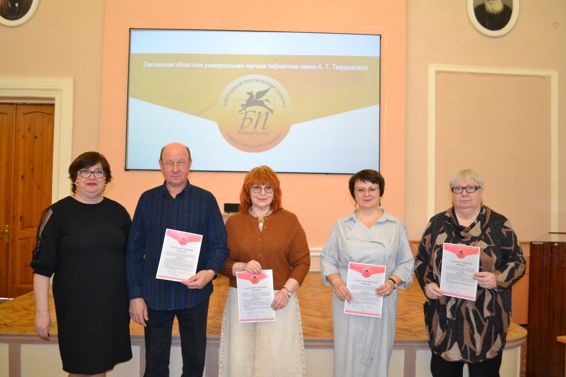 В областной библиотеке имени Александра Твардовского подвели итоги ежегодного поэтического конкурса «БиблиоПарнас». «БиблиоПарнас» проводится уже 14 лет, и за это время в нем приняли участие более полутора тысяч поэтов-любителей (к участию не допускаются профессионалы, задача конкурса – поддержка начинающих авторов). В этом году поступило более 100 заявок из всех уголков Смоленщины, а также из Москвы и Республики Беларусь – из Витебска, Мстиславля, Лиозно. Алисе Пузыревой, самой молодой участнице, 15 лет, а самой старшей, Антонине Трусовой – 82 года! В этом году было представлено больше работ в возрастной категории от 15 до 30 лет, чем в предыдущие годы. И это не случайно – в 2026 году Смоленск получил статус «Молодёжной столицы России» по итогам Всероссийской премии «Время молодых». Отборочные этапы прошли в Вязьме, Сафонове, Починке, Рославле, Духовщине, Смоленске. Конкурсантов оценивали высокопрофессиональные эксперты – представители писательских организаций, преподаватели Смоленско