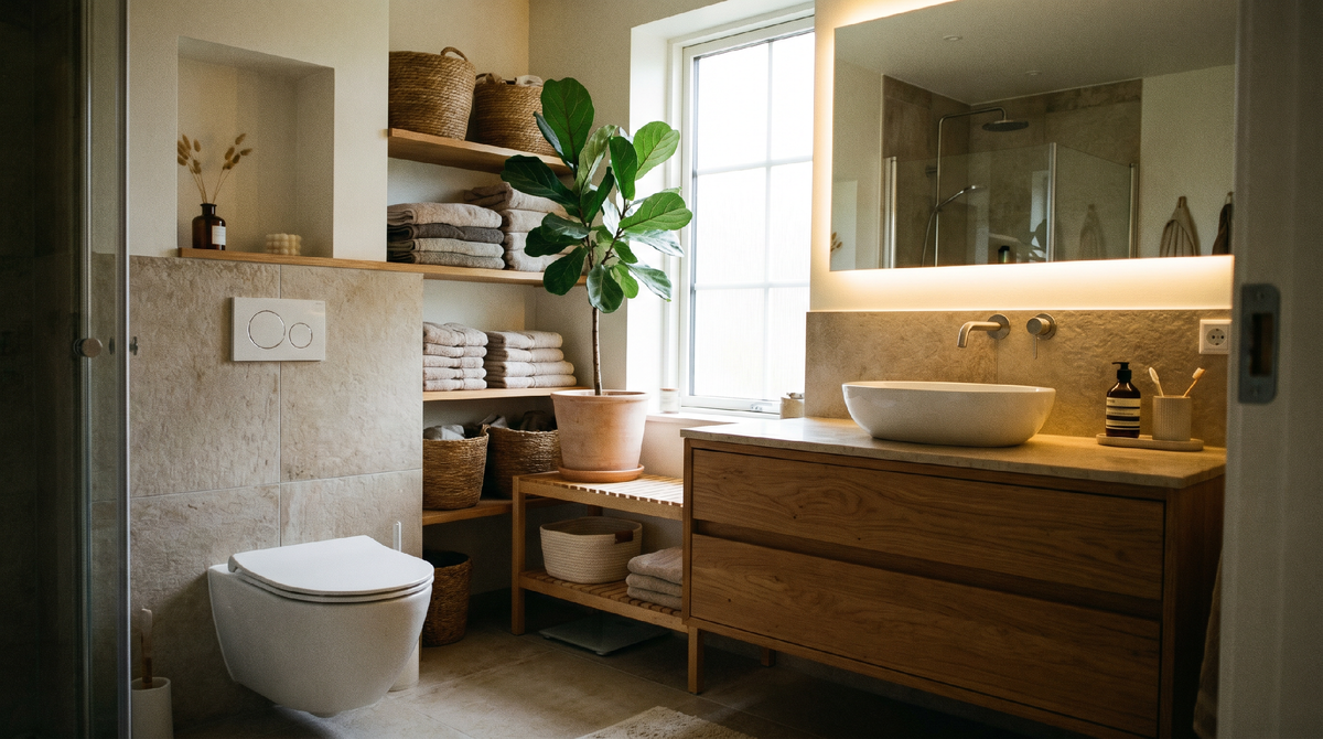 Ремонт ванной комнаты обычно начинается с выбора плитки и цвета стен. Но на практике комфорт зависит совсем от другого — от правильно подобранной сантехники, размеров мебели и продуманного пространства. Именно эти детали каждый день влияют на удобство использования ванной комнаты. Разберём 5 решений, которые помогут сделать ванную современной, удобной и визуально аккуратной. Подвесные модели давно перестали быть только дизайнерским решением. Сегодня это один из самых удобных вариантов для квартиры или дома. Преимущества: Особенно актуально для небольших санузлов, где важен каждый сантиметр. 2. Напольный унитаз — классика, которая остается актуальной Если нужен понятный, надежный и практичный вариант — напольные модели по-прежнему остаются востребованными. Почему выбирают: Современные напольные унитазы уже давно отличаются аккуратным дизайном и компактными размерами. Одна из самых частых ошибок в ванной — отсутствие мест хранения. В результате всё стоит на виду: бытовая химия, косметика