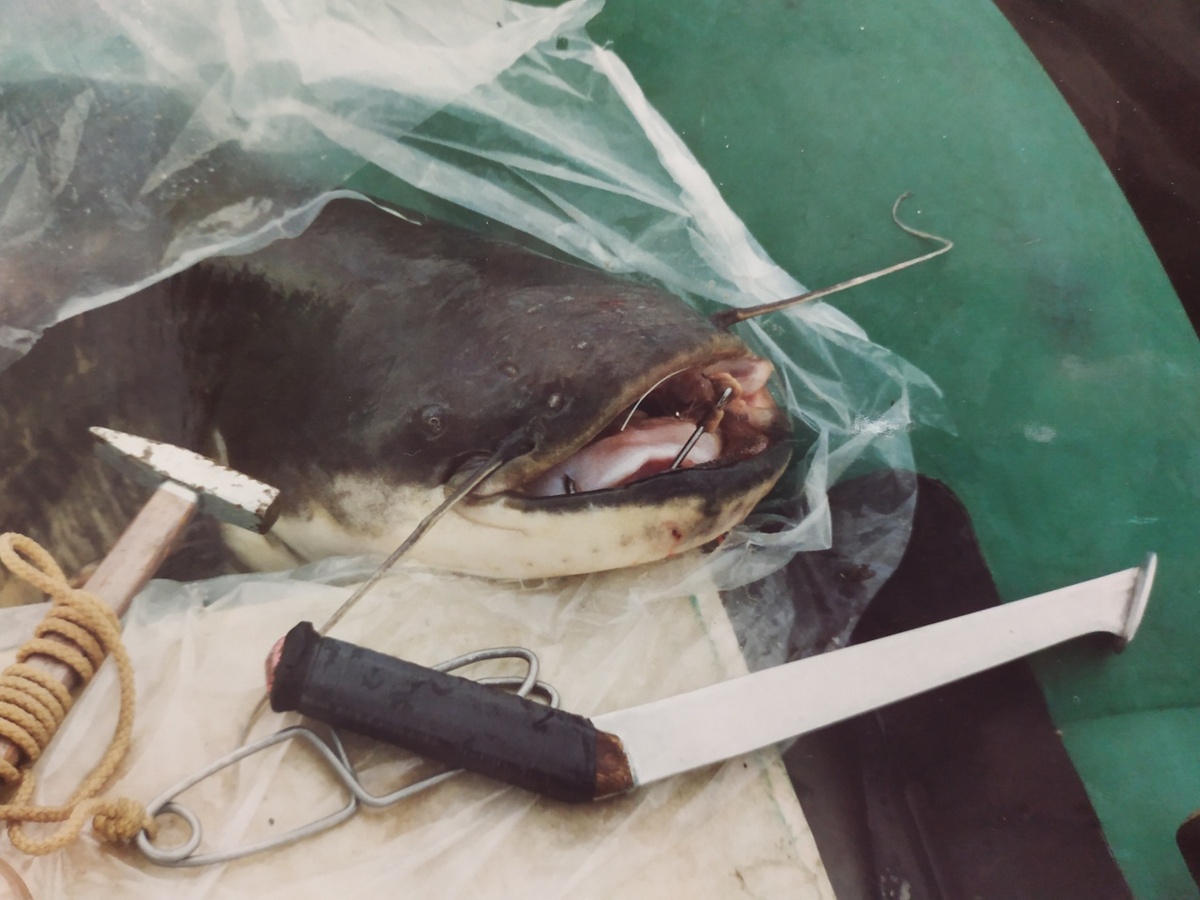 Сделал серию из 10 ударов и увидел, как черное вывернулось в метрах 50 от меня в ряби. Показалось? НЕТ!!! Это башка сома!!!