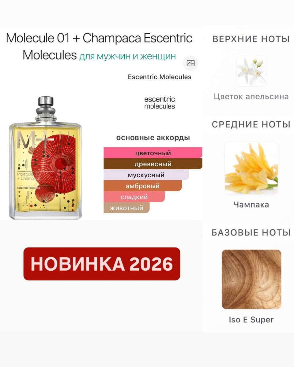 🔔Еще одна новинка 2026 от самого популярного и самого продаваемого бренда Escentric Molecules - Molecule 01+ Champaca