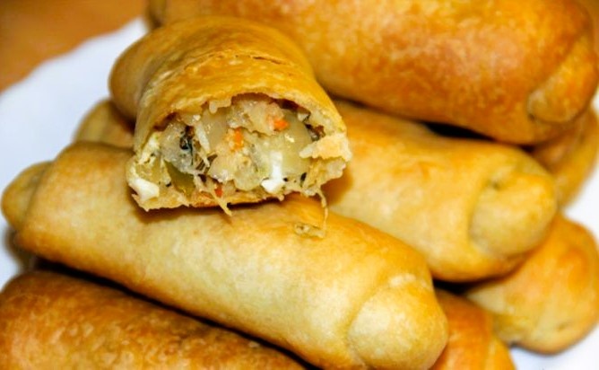 Всем привет! Продолжаю делиться с вами с интересными и простыми, на мой взгляд и вкус, рецептами выпечки. Тоненькое тесто и много-много начинки. Из такого теста можно сделать вкуснейшие пирожки, с разнообразной начинкой. Такое тесто получается всегда. вкусно с любой начинкой. В миску просеиваем муку - 3 стакана. Для этого рецепта всё отмеряем стаканами. Мой стакан 250 мл. Добавляем 0,5 стакана воды и 0,5 стакана растительного масла. Воду используем обычную .холодную. Сюда же - соль и сахар. Замешиваем тесто. Добавляем немного сахара. Но можно и без него - чуть пресновато, но тоже вкусно получается. Поэтому, при желании, сахар можно исключить, хотя с ним всё же вкуснее. Замешиваем тесно, оно получается очень эластичное. Нарезаем на кусочки (на 7-8 частей). Каждый кусочек раскатываем очень тонко, насколько это возможно. Даже стол должно быть видно через тесто. Начинка для этих пирожков подойдет любая, например, тушёная капуста. К капусте можно добавить обжаренные грибы или кусочки м