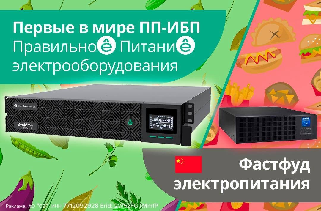 Systeme Electric производит первые в мире ПП-ИБП. ПП — Правильное (электро)Питание для оборудования. ПП-ИБП обеспечивают не просто бесперебойное, но именно правильное питание без помех и скачков напряжения, от которых компьютеры выходят из строя. В общем, защищают оборудование от ВСЕХ возможных проблем с нестабильным электричеством — даже от тех, о которых вы не знаете (все-таки мы здесь ПТОшники, а не электрики и сисадмины). Помним — на здоровье оборудования не экономят! ПП-ИБП Systeme Electric с онлайн-топологией (нулевым временем переключения на батареи): ✔ Тотальный онлайн-ЗОЖ — онлайн Защита от Отключений Железа. ✔ Повышенная БЖУ — Бесперебойность Жизненно-важных Устройств. Тянут нагрузку в 150% от номинальной. ✔ Настоящий суперфуд для оборудования — высочайший КПД 95%. ✔ Самое полное ПП-меню — поддерживают все возможные интерфейсы и протоколы на одном устройстве, не будет проблем с подключением нового бесперебойника к существующему оборудованию. Systeme Electric — бывшее росси