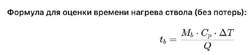 Пример для 90-мм экструдера: • Масса ствола: ~475 кг • Удельная теплоемкость стали: 0,5 кВт·с/кг·°C • Нагрев на 200°C • Мощность нагрева: 30 кВт • tb≈26 минут (без потерь) → с потерями ~40–45 минут Время нагрева шнека (масса ~83 кг) → ~5 минут без потерь. Общее время нагрева без воздушного зазора: ~45–60 минут. С воздушным зазором: может превышать 2 часа для 90-мм экструдера. Планируйте запуски с запасом! Хороших выходных #калькуляция #время_нагрева #расчеты #экструдер #теплотехника