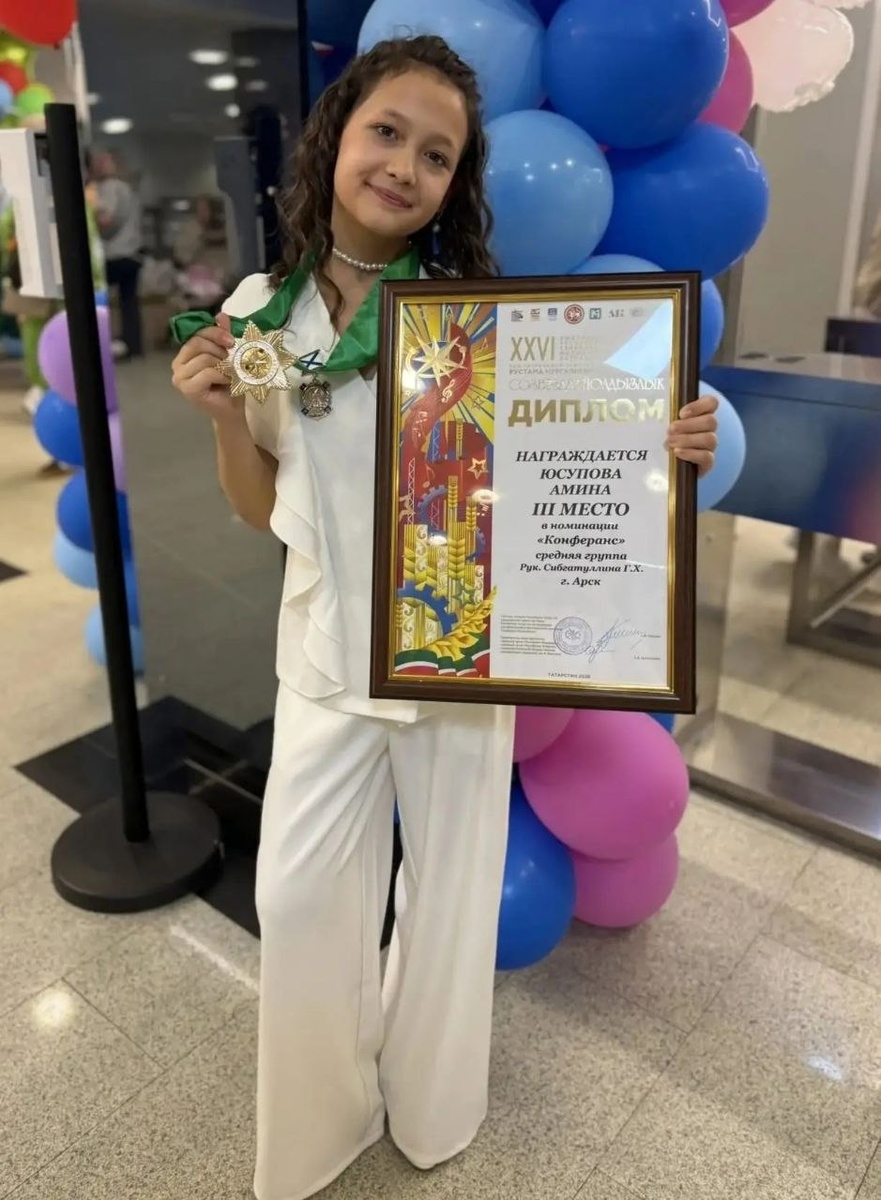 ! Казан шәһәре «Уникс» концертлар залында узган Гала-концертта Арча сәнгать мәктәбе укучысы Йосыпова Әминә (конферанс, уртанчы группа җитәкчесе Альбина Йосыпова ) 3нче урынны алды. Чын кунелдән котлыйбыз!!!