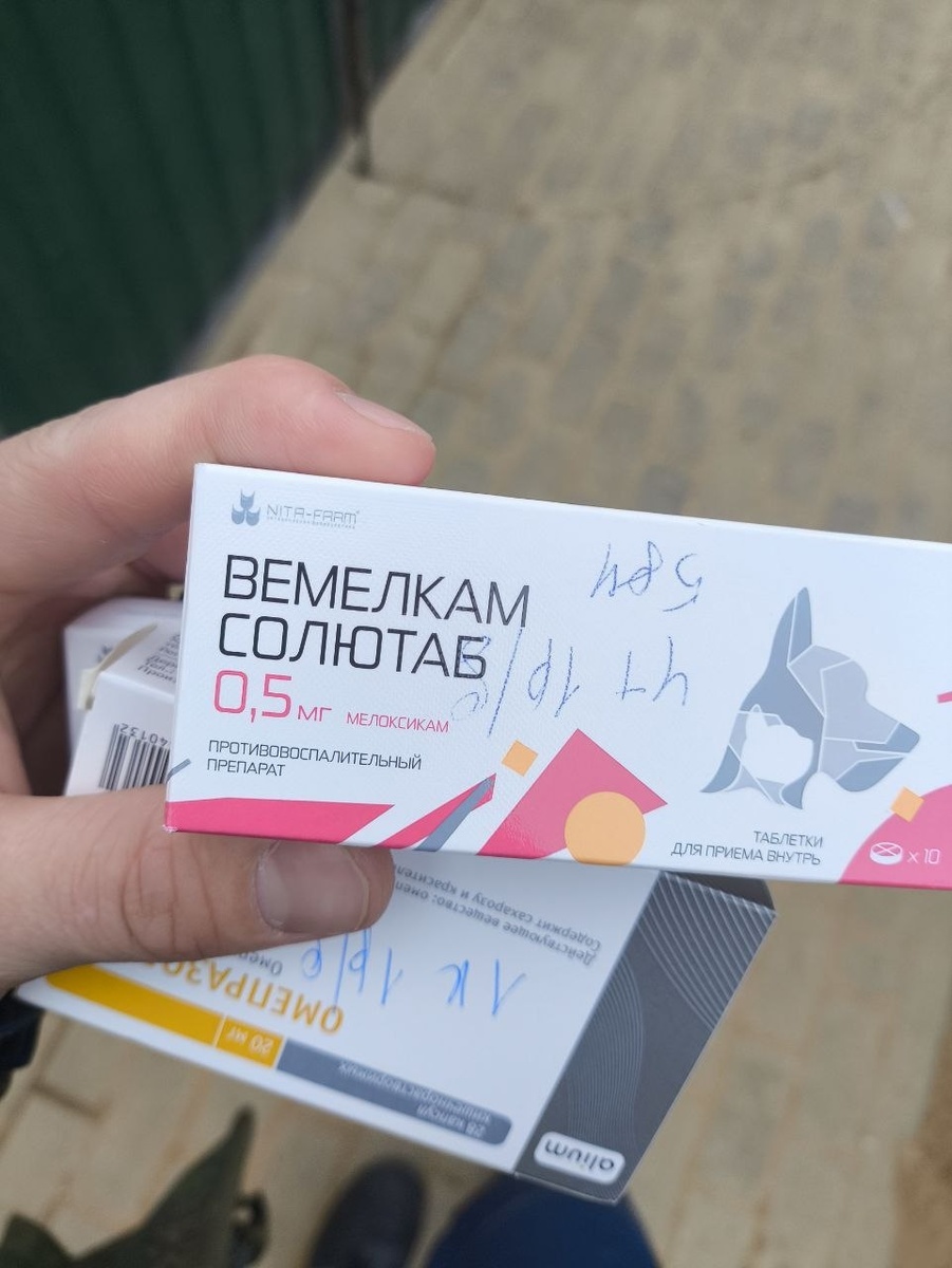 : Мосю водил ветблок. Хромает, достаточно сильно. Сейчас чуть легче, но всё равно, на правую прихрамывает, идёт вприпрыжку, на лапу старается не опираться. Сделали снимки. Ждем результат. Прописали таблетки, 5 дней давать надо. Мося супер справился, вертели его как только хотели. На поводке ходит, но пуглив очень, приходилось на груди перемотать. P.S. Мося на Трококосиле. Дали уже две дозы, третья будет 3 мая. P.S1. Вемелкам отменен. Ибо посадится желудок. ©️Тарасики MAX | Telegram | Болтушка