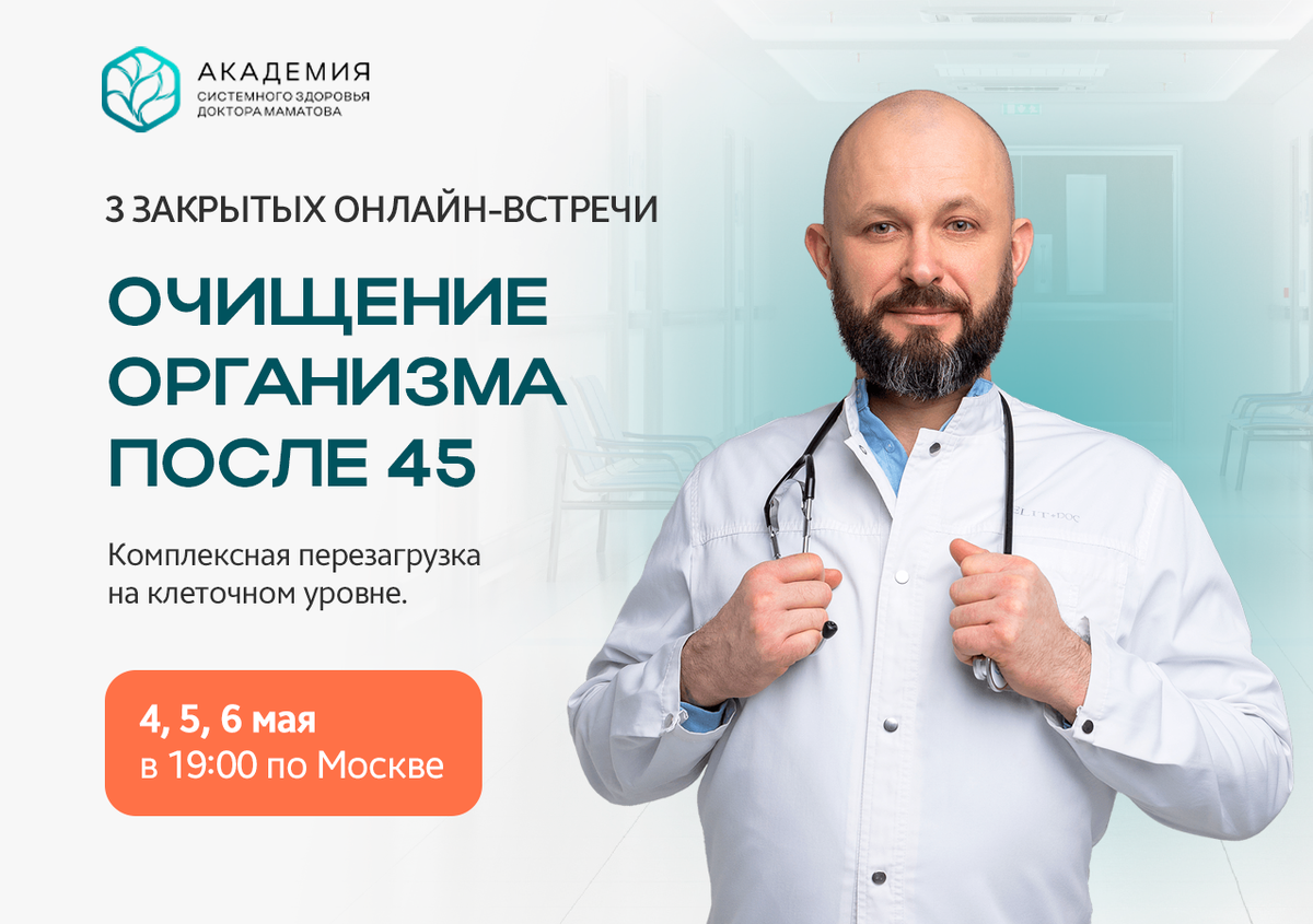 После майских застолий многие начинают чувствовать себя не лучшим образом: усталость, тяжесть в животе, вздутие, отёки и проблемы с пищеварением. Это признаки того, что организм перегружен, а обмен веществ нарушен. В такие моменты человек начинает искать быстрые решения, но часто сталкивается с мифами и небезопасными методами очищения, такими как жёсткие диеты, клизмы или прием таблеток, но на самом деле все может быть гораздо проще и безопаснее. Приглашаю Вас на 3 бесплатные закрытые онлайн-встречи «Очищение организма после 45», где мы подробно разберём, как очистить организм и восстановить обмен веществ безопасно, без жёстких ограничений.