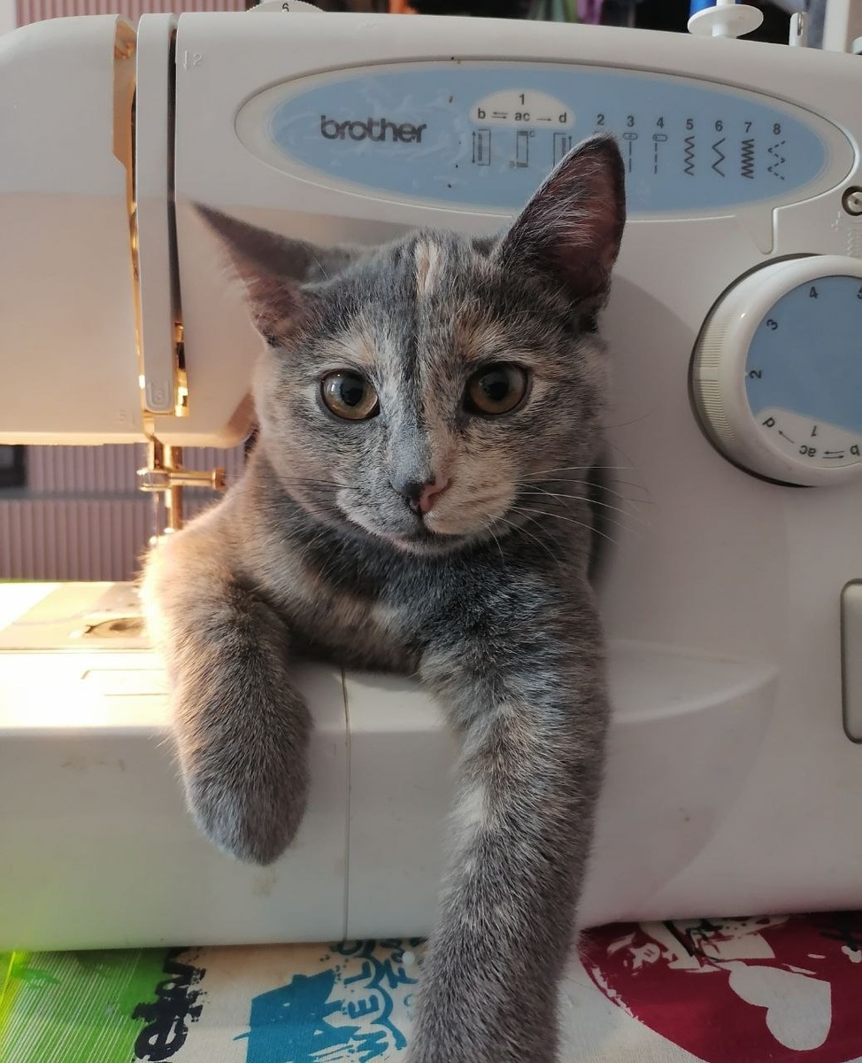 Швейная примета: проект получится удачным, если кот посидит на машинке))