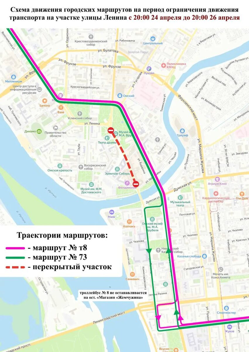 В Омске на все выходные закроют проезд по улице Ленина от площади Победы до Партизанской - из-за проведения Пешеходного Любинского