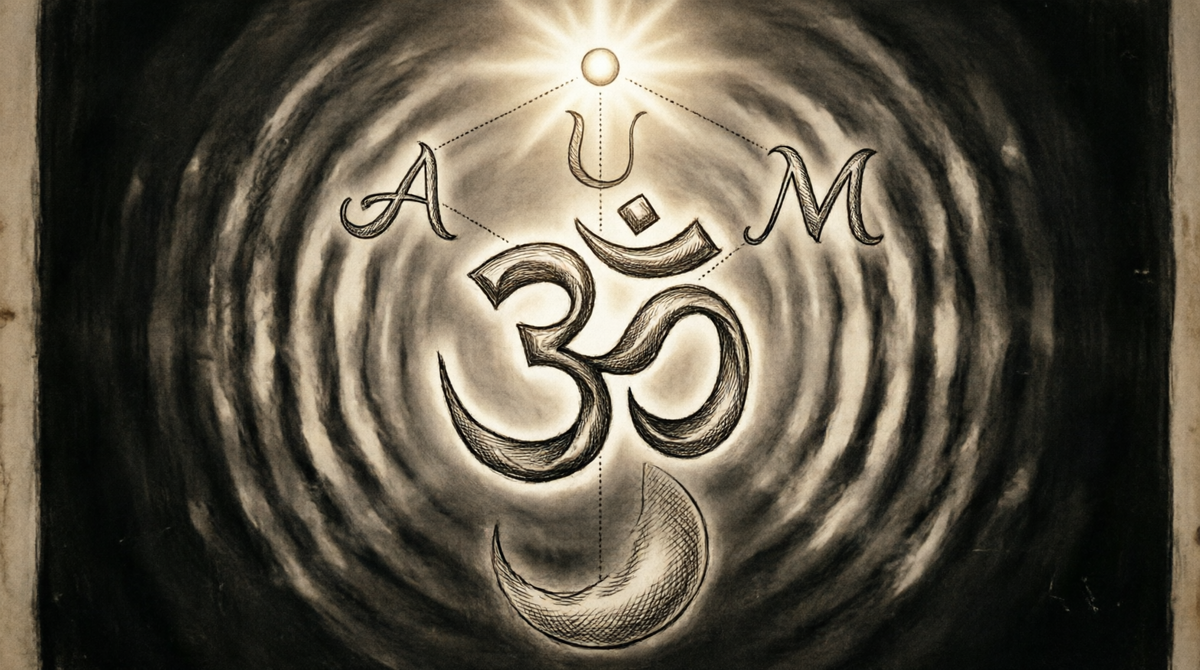 Как одна вибрация породила мироздание Пролог. Звук до слов Ом (или Аум) — это не просто «знак». Это мантра, звуковая вибрация, которая, согласно индуистской и буддийской космологии, была первым звуком, породившим мироздание. В начале был не Слово, как в христианстве. В начале был Звук. Вибрация. Аум. Этот символ используется в индуизме, буддизме, джайнизме, сикхизме. Это, пожалуй, самый кросс-религиозный символ в мире. Что же такое Ом? И почему одна вибрация считается основой всего сущего? Часть 1. Каллиграфия Ом: три кривых, полукруг, точка Символ Ом (ॐ) состоит из нескольких элементов: · Три кривые — символизируют три состояния сознания: бодрствование, сон со сновидениями и глубокий сон без сновидений. · Полукруг — майя, иллюзия, отделяющая нас от высшей реальности. · Точка (бинду) — абсолютное состояние, турья, чистое сознание, которое находится за пределами трёх обычных состояний. То есть Ом — это не просто буква. Это карта сознания. От обычного бодрствования (первая кривая) до чис