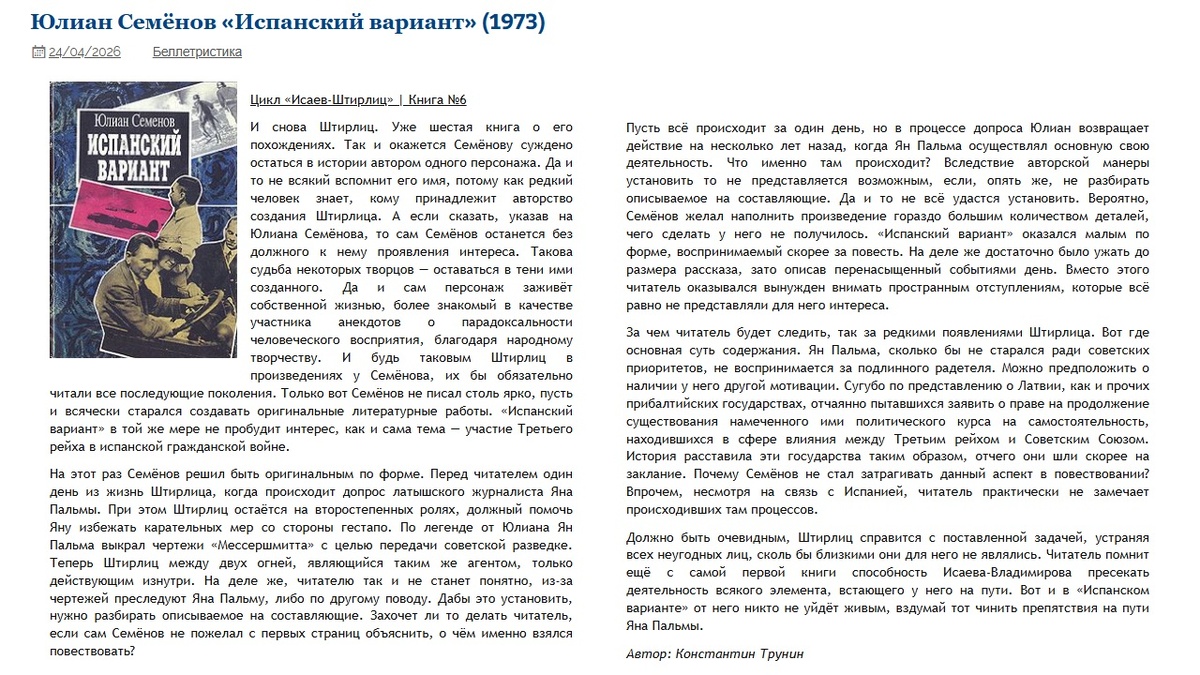 Юлиан Семёнов «Испанский вариант» (1973) | Критика
