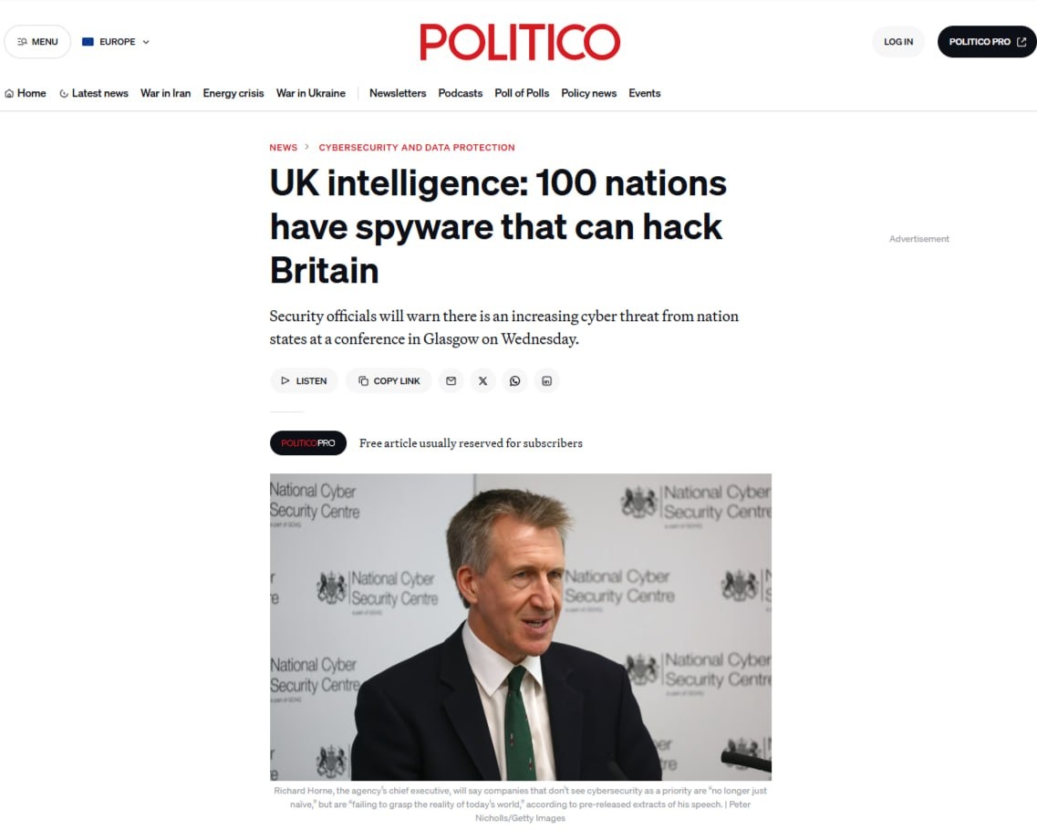 «По данным английской разведки, более половины государств мира приобрели технологии, с помощью которых можно взломать инфраструктуру, компании и частные сети Англии. За год количество значимых для страны кибератак на Англию удвоилось», - сообщает газета Politico. Давайте подумаем, кто же в этом виноват? 🔻24 февраля 2022 года – сразу после начала СВО – Лондон запустил секретную программу UK Ukraine Cyber Programme, направив на реализацию £6,35 млн. (более ₽640 млн.) Её участниками были сотрудники английских спецслужб. Заявленная цель – оказать поддержку Украине в киберпространстве. Практически сразу количество кибератак на Россию кратно возросло. 🔻Спустя два месяца в интервью испанским СМИ украинский министр цифровой трансформации Михаил Федоров хвастался: «Мы осуществили более 660 кибератак и (DDoS) атак против российского и белорусского бизнеса, компаний, банков и учреждений». Совпадение? 🔻В мае 2025 года министр обороны Англии Джон Хили публично заявил: «Клавиатура теперь – эт
