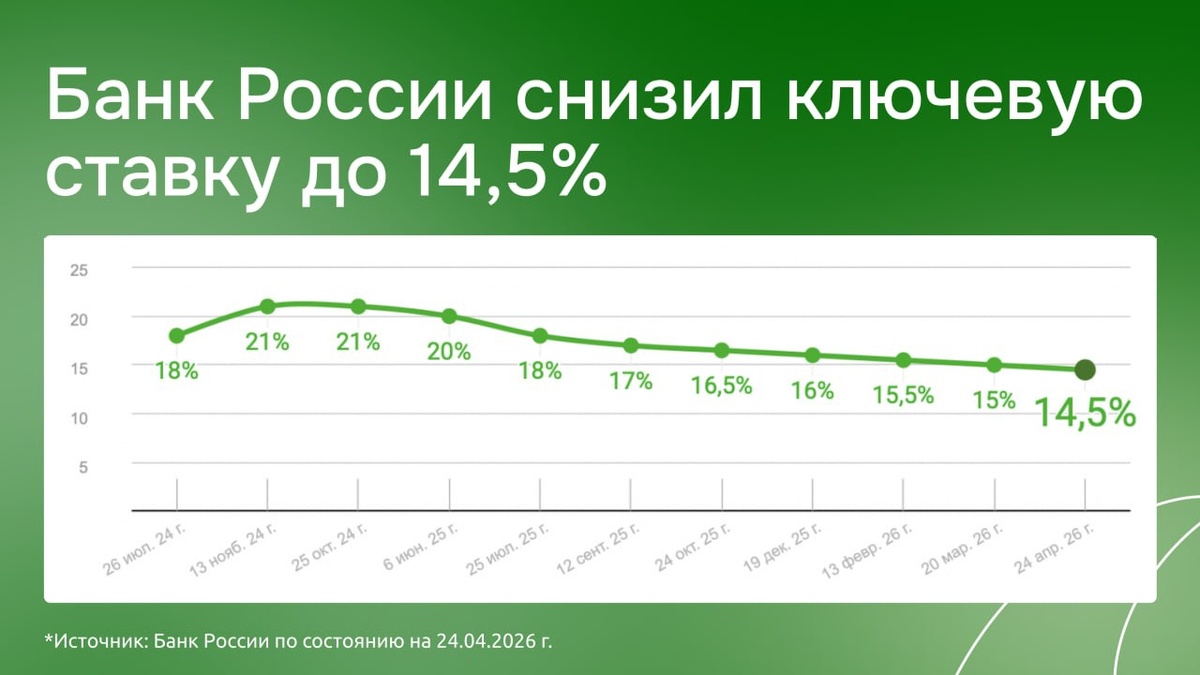 Совет директоров Банка России на заседании от 24 апреля 2026 г. снизил ключевую ставку.