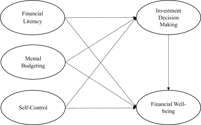 The body of research that is now available on the topic of financial well-being hints that the concept of financial well-being is a subjective evaluation of one’s present and future financial situation [32–35]. The relevance of objective economic measurements, such as a consumer’s income, savings, and investments, credit score, credit card debt, regular mortgage payment, and tax payments, was stressed in much early academic research in the financial wellbeing field [36–38]. The subjective evaluation of financial wellbeing, on the other hand, focuses on the consumer’s self-assessment of his or her disposition, attitude, belief, and behaviors linked to money management [32, 35]. According to this subjective interpretation of financial wellbeing, two people with comparable salaries or debt loads may regard their own financial wellbeing very differently. Due to importance of subjective financial wellbeing for researchers studying consumer behavior, financial institutions (FIs), non-profit organizations, businesses, and decision-makers in the government, study choose to investigate subjective side of this contrast. The relationships described in the study, which examines the impact of financial literacy, mental budgeting, and self-control on financial wellbeing with the mediating role of investment decision making, can be supported by several theories from the fields of economics, psychology, and behavioral economics, this study uses cognitive dissonance theory. Cognitive Dissonance Theory suggests that individuals strive for consistency in their beliefs and behaviors [39]. Financial literacy, mental budgeting, and self-control can influence the alignment of an individual’s financial decisions with their overall financial goals and values, reducing cognitive dissonance and enhancing financial wellbeing.