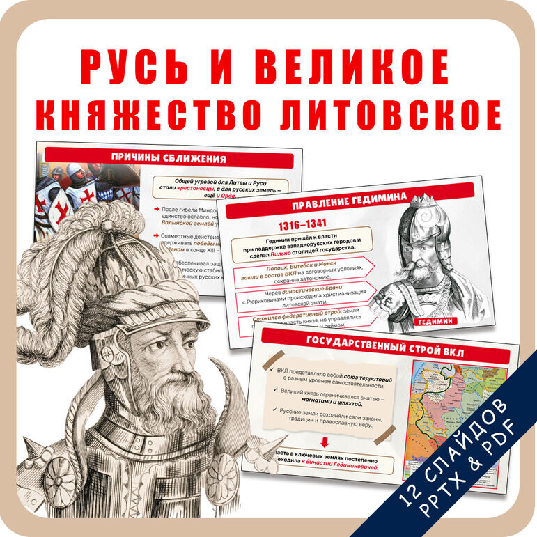 • Итоги развития Великого княжества Литовского Презентация выстроена в соответствии со структурой учебника, что позволяет последовательно проследить развитие политической карты Восточной Европы, понять причины объединительных процессов и особенности устройства Ве