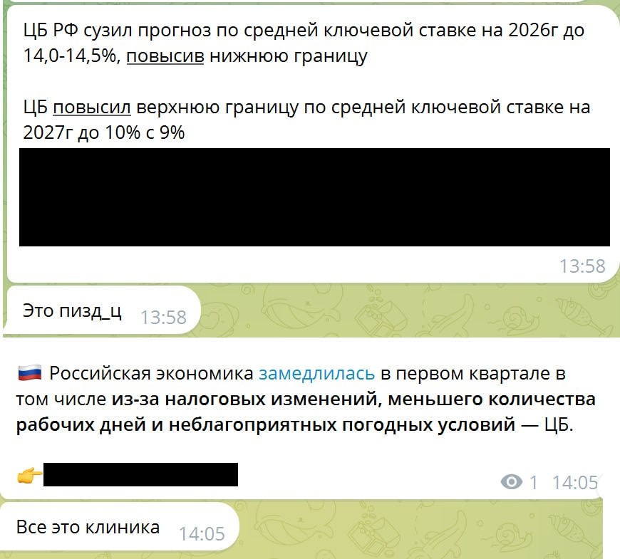 Инфляция замедляется. Нефть выше 100. Рынок акций чуток отскочил ото дна. Самое оно ещё и прогнозы по ставке повышать. "Шорты спасали как могли" (с) Ну или реально Путина валят у нас... Тогда интересные времена впереди. Так что люди. ☝️Подписывайтесь на канал по недвиге, там такой херни нет, только постоянная прибыль: 👉 https://t.me/ProfitGateRealty Канал по недвиге в Max: 👉 https://max.ru/ProfitGateRealty Ну и надеюсь вы понимаете почему на 90% находясь в недвиге я кайфую в такие моменты. Поскольку не надо ставить на откровенных дураков :)