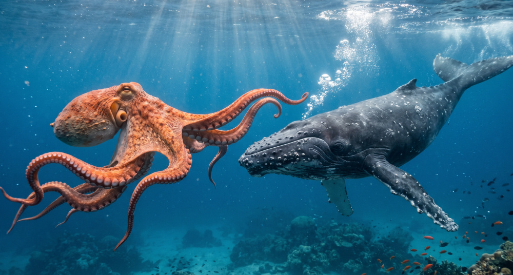 Исследование, опубликованное в журнале Science, указывает, что в позднем меловом периоде (примерно 100–72 млн лет назад) океаны могли быть домом для гигантских осьминогов. По оценкам их размеры могли достигать 19 метров. Международная группа палеонтологов под руководством Сина Икегами и Ясухиро Иба (Университет Хоккайдо) проанализировала более двух десятков ископаемых остатков и пришла к выводу, что эти животные могли занимать вершину пищевой цепи. По оценкам ученых, размеры некоторых видов осьминогов сопоставимы с крупными морскими рептилиями того времени — мозазаврами и другими хищниками верхнего уровня. «Эти осьминоги, возможно, представляют собой самых крупных из описанных беспозвоночных, соперничающих с современными им гигантскими морскими рептилиями», — отмечают авторы исследования. Следы износа на ископаемых клювах указывают на активное использование для раздавливания добычи с твердыми элементами скелета. Это говорит о том, что животные были не пассивными формами, а полноценными
