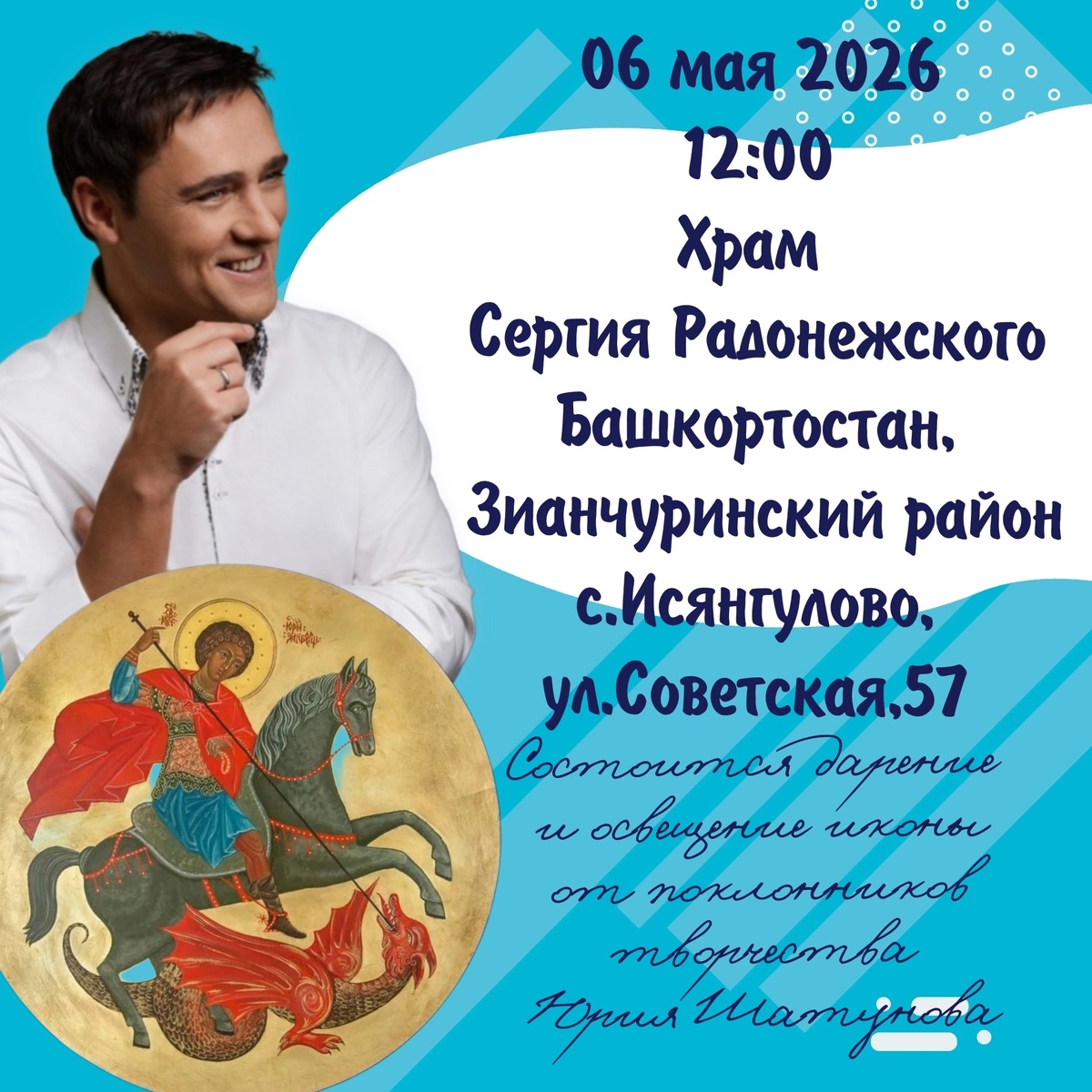 06 мая 2026 года в храме Преподобного Сергия Радонежского состоится торжественная церемония дарения уникальной рукописной иконы святого Георгия Победоносца. Событие посвящено памяти безвременно ушедшего Юрия Шатунова.
