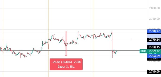 Скорректировались на 85% по АТР, нащупали лок минимум ур 2755 Сейчас проторговываемся в лок боковике 2760 - 2755, пробой уровней технически сигнал для продолжения движения. Панического слива НЕ было, судя по АТР ММВБ, мы даже АТР в моменте не отпадали и судя по объему. _______________ НЕ ВОВРЕМЯ нефть стали лить конечно((( Очень невовремя. На отскок встал, если рынок зальют вместе с нефтью, просто отстоплюсь. Нефть конечно форсмажор в моменте.