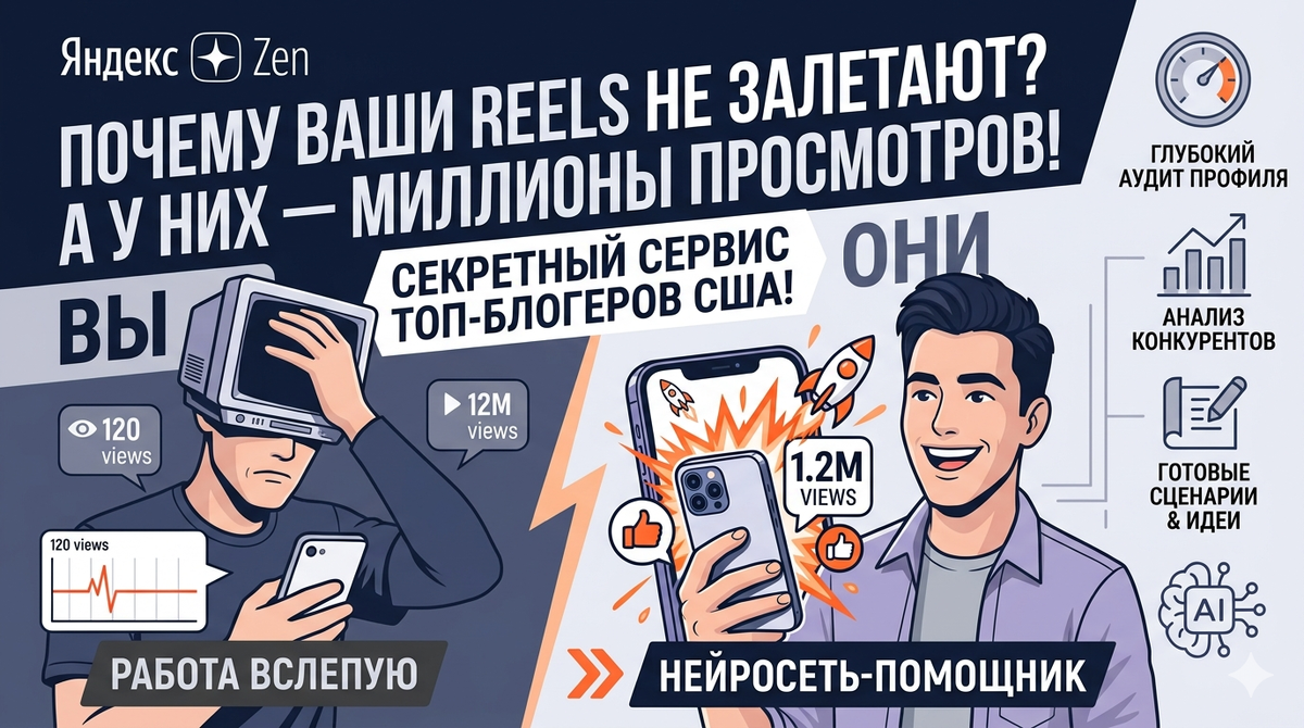 Пока вы гадаете, на какую тему снять следующее видео и почему охваты замерли на месте, западный рынок уже вовсю использует технологии, которые вскрыли алгоритмы соцсетей. Теперь я понимаю, почему контент топовых блогеров залетает в рекомендации с пугающей точностью. Нейросети больше не просто «помогают» — они готовят идеальный план захвата рынка, пока ваши конкуренты остаются далеко позади. Работает это впечатляюще: вы просто даете сервису ссылку на свой профиль, и он проводит глубокий аудит. ИИ четко подсвечивает: Вы получаете прозрачную картину того, почему ваш блог не растет так быстро, как мог бы. Но самая мощная функция сервиса в другом. Вы отправляете ему ссылку на любого конкурента, и нейросеть буквально разбирает его успех на атомы. Она объясняет, почему именно его контент попадает в рекомендации и какие конкретно триггеры он использует. Но главное — ИИ говорит, как именно ВЫ можете применить эти же приемы для себя. Всего одно действие — и у вас на руках: Это уже не просто инст