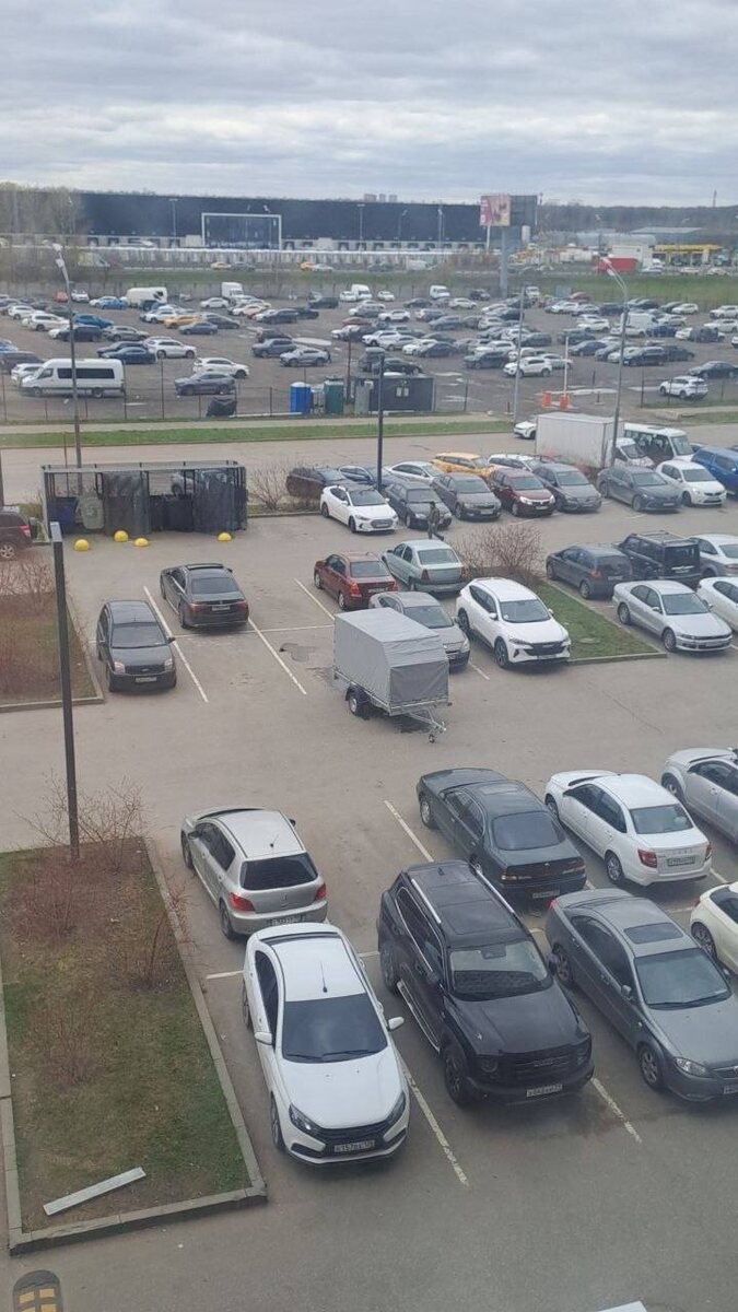Чей прицеп? Ветром катается по парковке. Может зацепить машины.