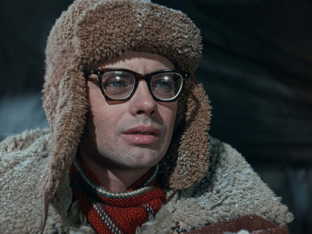 Очень многое в фильме делает атмосфера. Снег, лес, река, вышки, мужская бригада, грубоватые шутки, тяжелая работа, и рядом с этим нежная линия Димы и Гали. И, конечно, музыка. Песня «А снег идет» в исполнении Майи Кристалинской здесь звучит удивительно точно. Она не украшает фильм, а делает его мягче и теплее. Точно так же работает и закадровый голос Зиновия Гердта. Без него картина была бы суше.