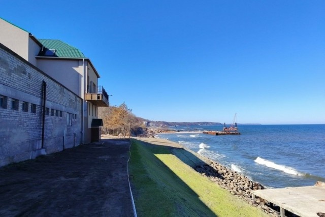 Возле базы БФУ под Светлогорском восстановили и укрепили часть склона. Специалисты завершили аварийные работы в Рыбном. Об этом сообщается в группе «Балтберегозащиты» «ВКонтакте». «После проведения БФУ имени Канта аварийно-восстановительных работ под техническим контролем специалистов „Балтберегозащиты” аварийная ситуация была ликвидирована, а береговой склон частично восстановлен и укреплён берегозащитной конструкцией из каменной наброски с ядром из геобэгов и осуществлён противоэрозионный гидропосев», — говорится в публикации. Часть склона у базы БФУ в Рыбном обрушилась во время шторма в январе 2025 года. На территории размыло коренной берег по верхней бровке уступа. Власти Пионерского запретили доступ на участок и перекрыли спуск. В течение нескольких месяцев специалисты проводили мониторинг аварийного места. К работам по восстановлению склона приступили в октябре. Фото со страницы «Балтберегозащиты» «ВКонтакте»