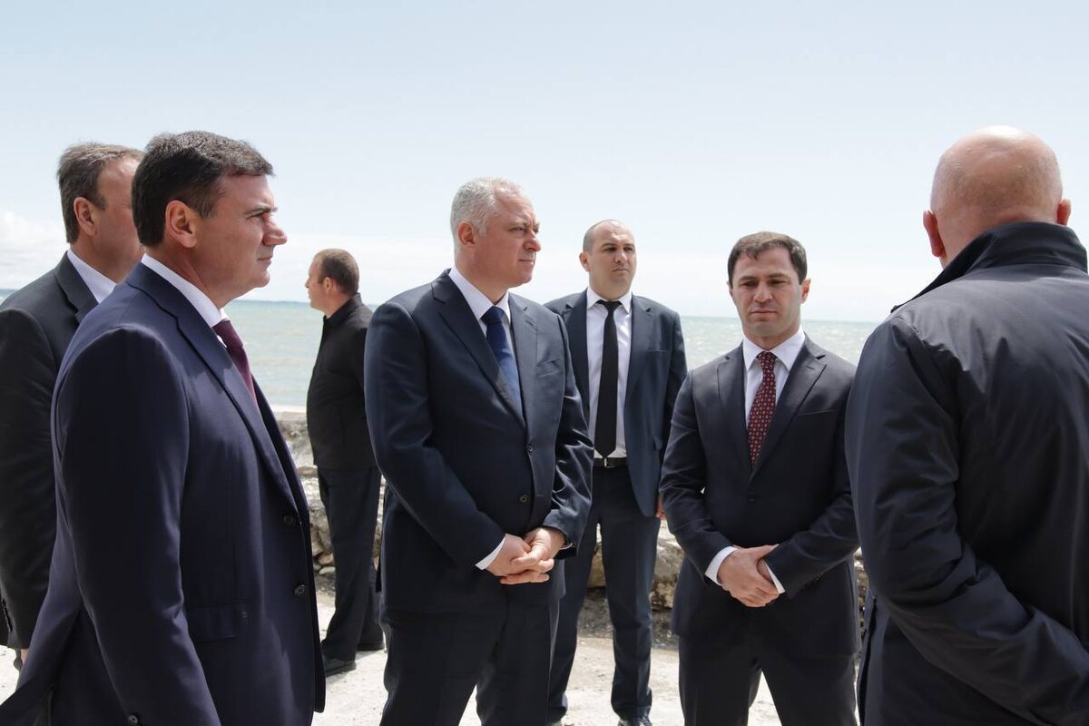 Президент Бадра Гунба, вице-президент Беслан Бигвава, премьер-министр Владимир Делба вместе с главой столичной администрации Тимур Агрба