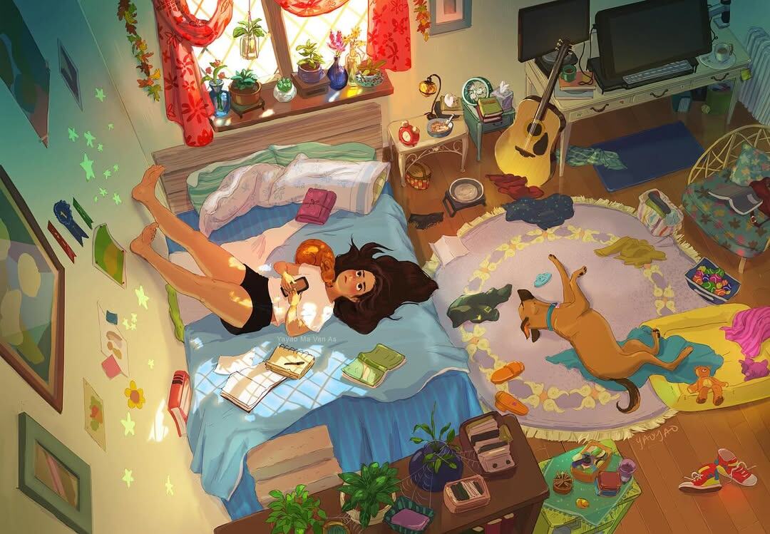 Быть одной и быть одинокой – не одно и то же. Кому-то очень трудно быть без партнера. Такие, если отношения закончились, начинают суматошно искать замену, им очень некомфортно. А есть люди, для которых проспаться одной и проводить вечера с собой – не наказание, а самый настоящий кайф. О такой жизни и рисует художница, чьи иллюстрации мне хочется вам сегодня показать. 44-летняя азиатская художница с трудно выговариваемым именем Яояо Ма Ван Ас зарабатывает на жизнь мультиками. Она сотрудничала с «Дисней» и даже над «Риком и Морти» трудилась. Но широкую популярность Яояо получила благодаря своим рисункам, в которых уже много лет показывает, как же здорово жить одной, наслаждаться свободой, наполняешь жизнь своими смыслами. Я уже как-то раз в блоге рассказывал о творчестве художницы, и комментариев было очень много. Причем, большинство пытались доказать, что позиция Яояо – ущербная и мужа собакой не заменишь. Трусиха! Эгоистка! В куклы не наигралась, инфантильная! – писали одни. Другие во
