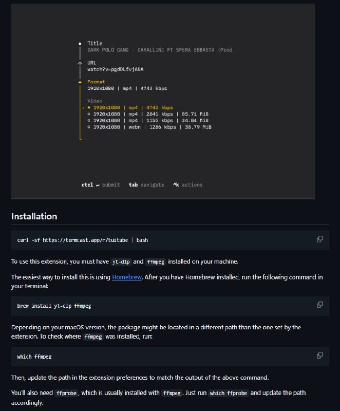 ⬇️ tuitube — это терминальный интерфейс для скачивания видео с различных платформ, построенный на основе утилиты yt-dlp