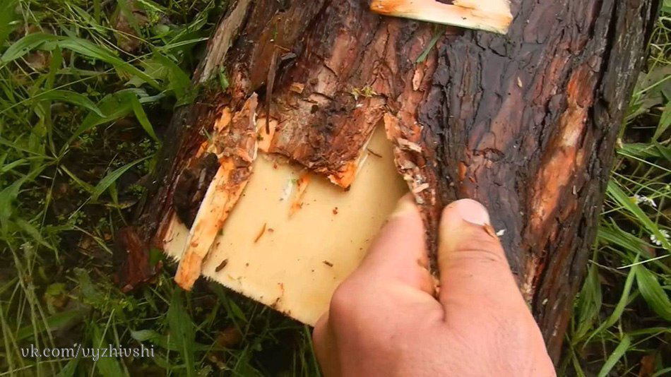 5. В любой сосне есть вязкая смола, которая прекрасно подходит для приготовления клея, достаточно сильного, чтобы сделать из палки копье, приклеив к нему наконечник стрелы, или починить инструменты. Соберите всю смолу, которую только сможете найти, в металлический контейнер, поставьте его на угли затухающего костра, чтобы скипидар и другие летучие компоненты испарились. Если контейнер маленький, хватит и нескольких минут, если большой, то понадобится минут 20-30. Смола станет более жидкой и будет поблескивать, но как только она застынет, будет твердой как камень. Если эффекта добиться не получилось, и смола по-прежнему вязкая, повторите процедуру еще раз.