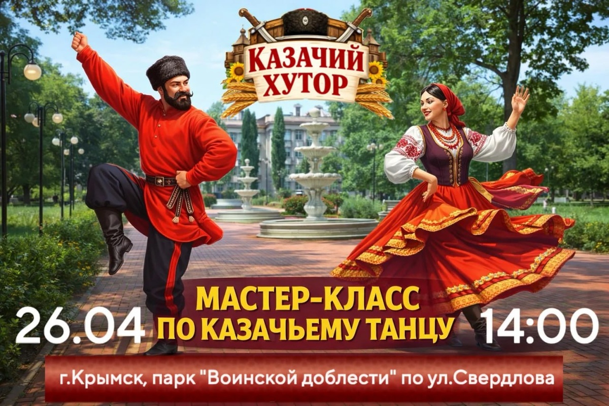 ! Этно-центр «Казачий хутор», реализуемый ККОБО «Город Доброты», приглашает на мастер-класс по казачьей культуре. 26 апреля в 14:00 г.Крымск в парке «Воинской доблести» на ул. Свердлова По всем вопросам и за информацией обращайтесь по телефону: +79883248767 Мария Хамедова. Приходите сами и зовите друзей! Сохраним казачью культуру вместе - через танец, уважение и преемственность традиций! Мы в 🇷🇺 MAX 📱 ВК 📱 ОК 📱 Дзен 🇷🇺Сайт