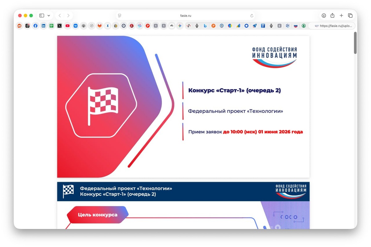 ФСИ анонсировал конкурс Старт-1. Приём заявок – до 1 июня 2026 года. Вот здесь презентация. До 5 млн рублей могут дать. У нас нет сейчас проектов, которые можно подать, кроме poisk.im но тут нет НИОКР к сожалению.
