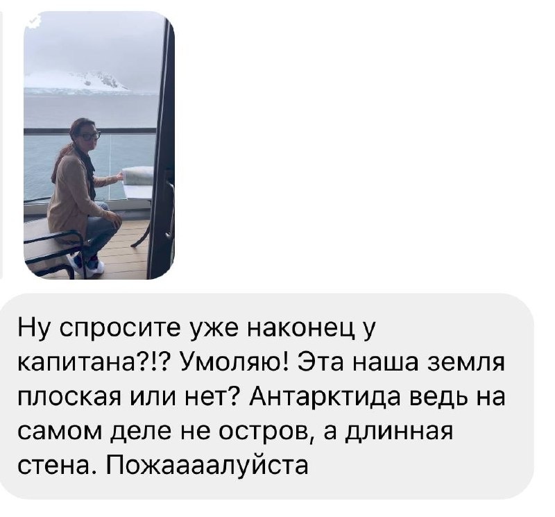 За неделю пребывания в Антарктиде, я получила множество сообщений пугающего характера: ⁃ Подтвердите пожалуйста, что Антарктида это стена и земля плоская? ⁃ А где же в Антарктиде белые медведи? ⁃ Вы возле Мурманска плаваете? ⁃ Заезжайте к нам на Кольский полуостров, вы тут рядом. Итак, Антарктический ликбез: Земля круглая, Антарктида - это огромный материк, покрытый толстым слоем снега и льда, белые медведи водятся в Арктике (в северном полушарии), в Антарктиде (южное полушарие) обитают пингвины, Мурманский и Кольский полуостров находятся в северном полушарии. Пспс: В Советском Союзе таких вопросов у людей не было, его хоть и ругают, но образование тогда было действительно сильным.🤔