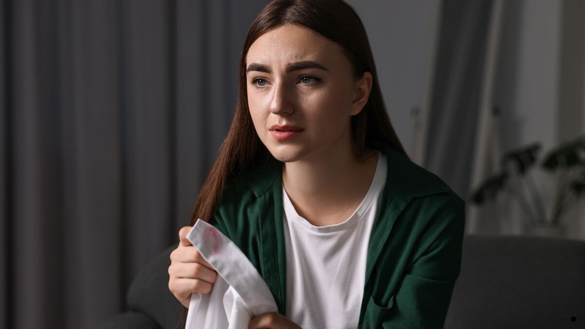 Молодая девушка судорожно хватал ртом воздух, лицо покраснело, руки дрожали.