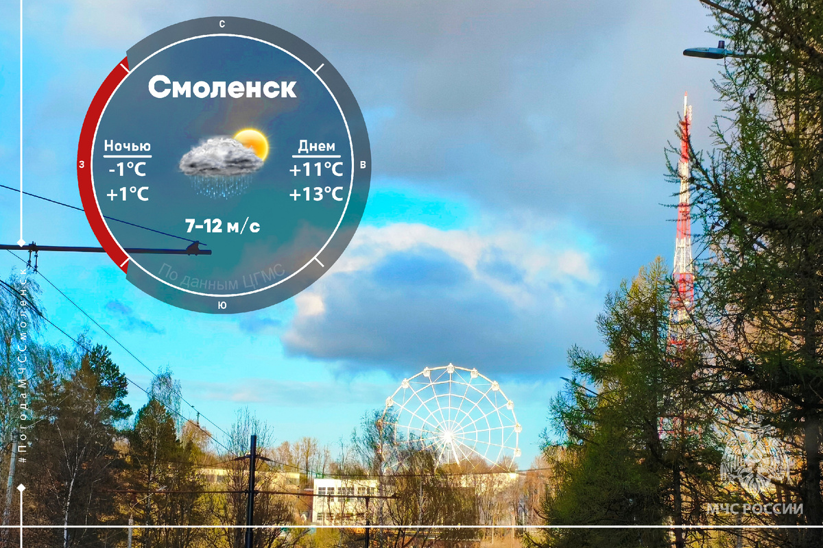 - в Смоленске: ночью -1°C…+1°C, днем +11°C…+13°C. МЧС России о сжигании мусора: