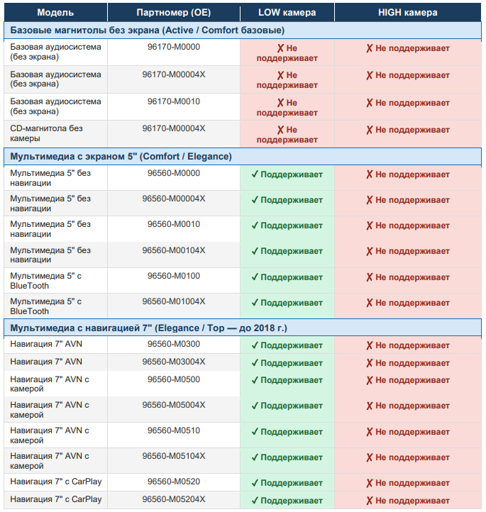 Перед покупкой камеры важно точно знать модель и номер штатной магнитолы. Разница между магнитолами не только в функционале, но и в том, какой тип сигнала они принимают, через какой разъём подключается камера и нужна ли активация через диагностику.