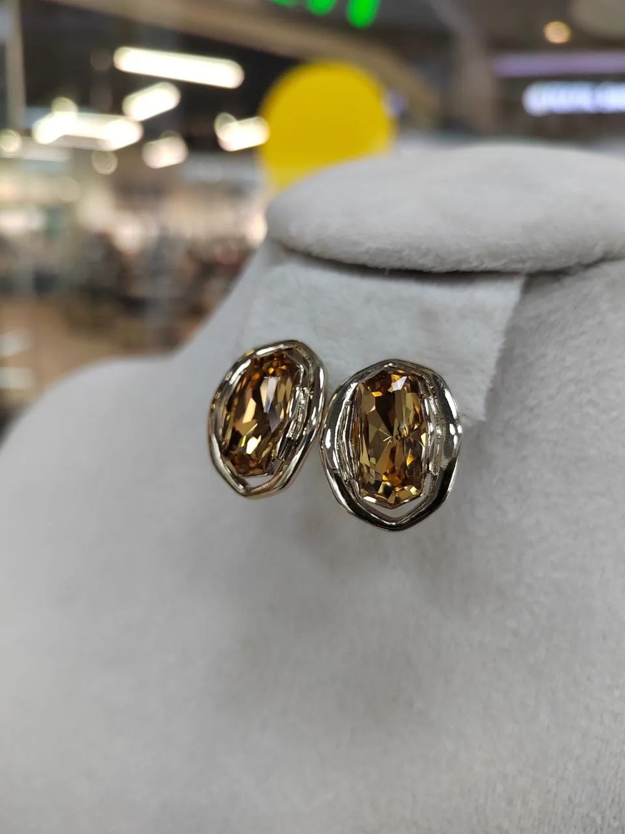 Серьги с кристаллами золотистого цвета виски) 🥃