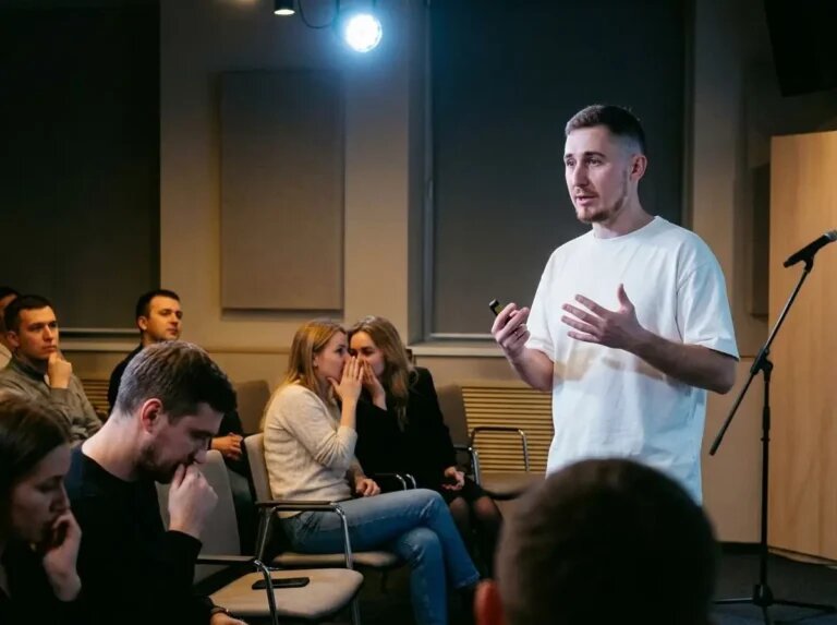 Иногда я выхожу говорить уже с внутренним напряжением: сейчас станет видно, что я «не дотягиваю». Во рту сухо, мысль ещё не собралась, а слова уже бегут вперёд. В такие моменты вопрос «как говорить ясно» звучит не как техника, а как попытка удержать себя.