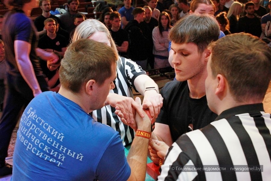 В ГГТУ имени П. О. Сухого завершился второй день республиканского турнира по армрестлингу в рамках студенческой универсиады. Если вчера спортсмены боролись за первенство на левых руках, то сегодня накал страстей сместился на правые, где и определились окончательные контуры командного и личного зачета. Подпишитесь на Гомельские ведомости