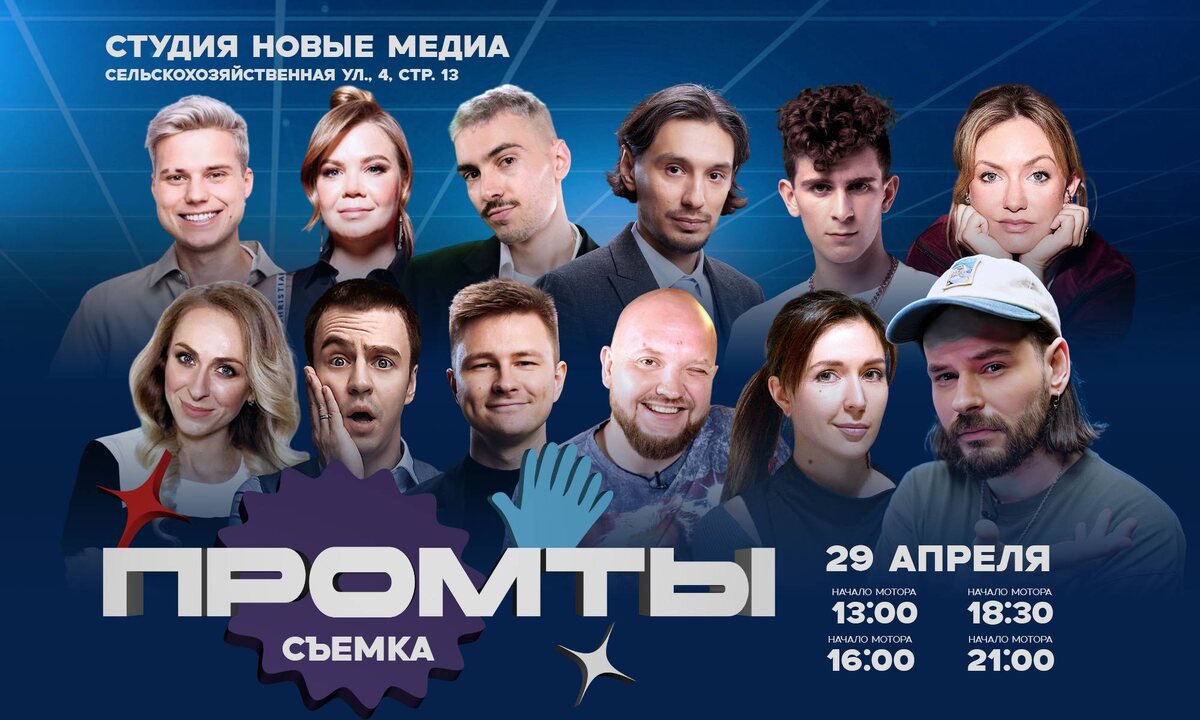 🐚 29 апреля в студии Новые медиа Мотор 13:00 Александр Алымов Ярослава Тринадцатко Секретный гость Мотор 16:00 Иван Абрамов Екатерина Моргунова Вадим Постильный Мотор 18:30 Женя Гришечкина Артур Бабич Алексей Стахович Мотор 21:00 Алла Михеева Саша Ваш Леша Янгер 📍 Сельскохозяйственная ул., 4, стр. 13 🐚 ВХОД СТРОГО ПО ПАСПОРТАМ Билеты на comedyconcert.ru 🥰 Telegram | MAX | VK