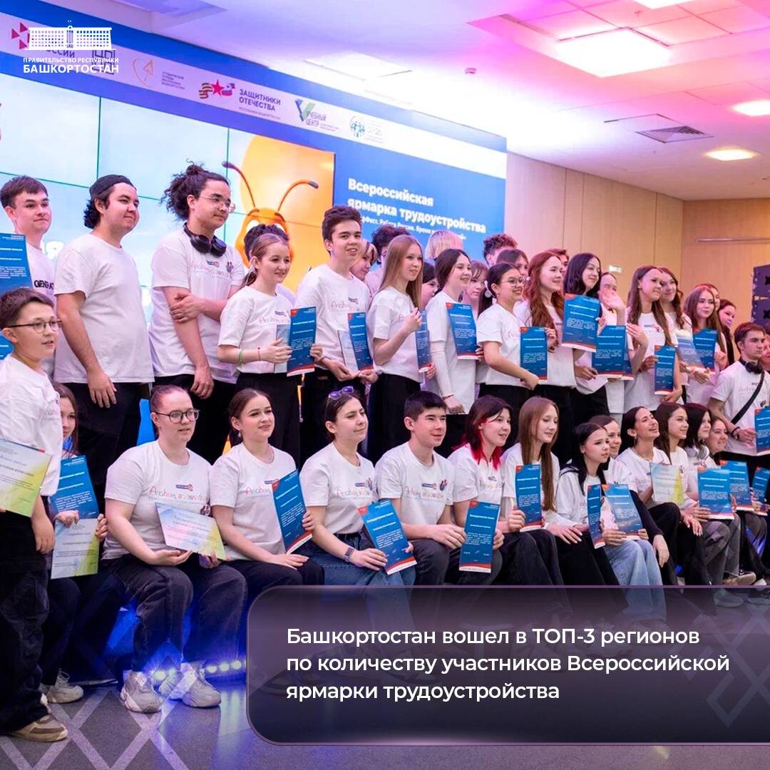 ⭐️ Башкортостан в тройке лидеров среди регионов страны по количеству соискателей, получивших предложения от работодателей на Всероссийской ярмарке трудоустройства. Республика также в числе лидеров по числу работодателей. — Более тысячи работодателей республики рассказали на 62 площадках, почему их стоит выбирать. Совокупное количество представленных вакансий достигло почти 17 тысяч! А присмотреться к организациям и предложениям на рынке труда пришли более 30 тысяч человек. За неделю более двух тысяч участников получили предложения о работе, — поделилась министр семьи, труда и социальной защиты населения Башкортостана Ольга Кабанова. ➡️ В Башкортостане также прошел Фестиваль профессий с профориентационными играми для молодежи, выставкой профессионального оборудования и техники, симуляторов производственных процессов. ✔️ Федеральный этап ярмарки трудоустройства пройдет в Башкортостане и во всех регионах страны 26 июня в преддверии Дня молодежи. Подписаться на Правительство РБ в Макс