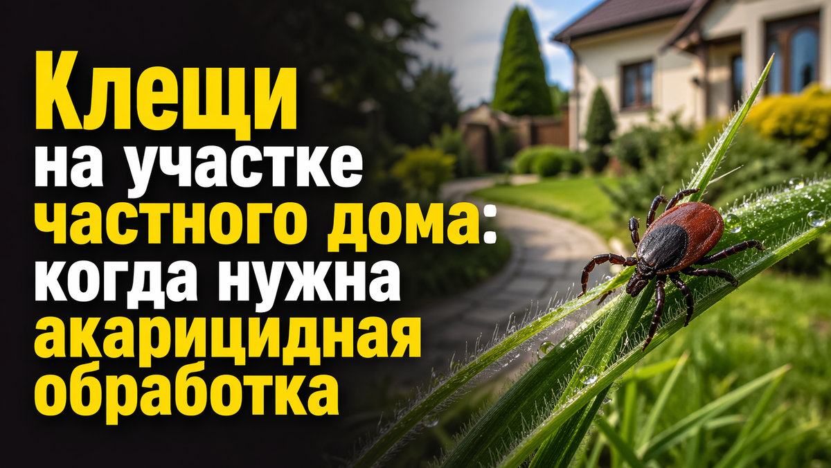 Клещи — это не только проблема леса или дачи «где-то за городом». Они могут спокойно жить на участке частного дома: в траве, кустарнике, под забором, возле дровника, компостной зоны, в тени деревьев и там, где редко косят газон 🌿 ⚠️ Главная опасность в том, что клеща обычно не видно сразу. Он не прыгает с дерева, как многие думают, а чаще поджидает жертву в траве и цепляется за одежду, обувь или шерсть животного. Акарицидная обработка участка особенно актуальна, если: ✅ на участке высокая трава или густые кусты