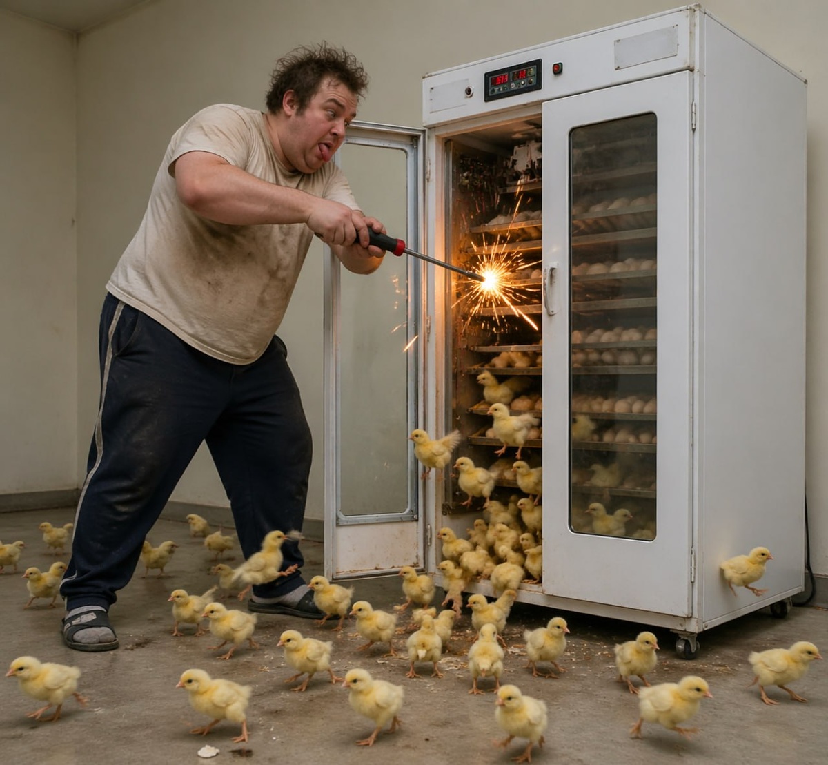 Наша компания уже более 30 лет производит в РФ промышленные инкубаторы. Но почему-то в последнее время участились случаи, когда инкубаторы приобретают люди, далёкие от инкубации, не понимающие и не желающие понять технические нюансы при работе с таким сложным промышленным оборудованием. Они просто "где-то в интернете" прочитали, что инкубация - выгодное дело и решили в это вложиться. По их представлениям, инкубатор - это такой же простой бытовой прибор как, например, холодильник или микроволновка. Включил холодильник - он холодит. Включил инкубатор - цыплята сами оттуда выпрыгивают. Нарушая все мыслимые технические требования, они устанавливают большие промышленные инкубаторы в бытовых и хозяйственных помещениях, без вентиляции, в мизерном пространстве, не соблюдая никаких ни технических, ни гигиенических норм. Инкубационные яйца такие горе-специалисты тоже не знают, где можно покупать, а где нельзя. И попадают в приветливые лапы мошенников, которые с удовольствием продают им просро