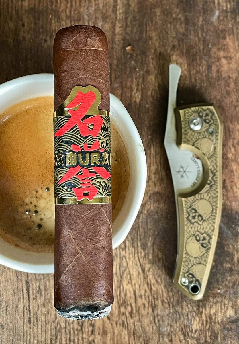 К сигарам от Фернандеса я давно подостыл, оставив себе несколько откровенно любымых серий, поэтому когда вижу очередную новинку, уже не бегу сломя голову заказывать ее. Но тут почитал ТТХ и решил не проходить мимо. Самурай скручен для американского магазина JR Cigars, эдакий локальный эксклюзивчик для тамошнего рынка. Внутри не часто встречающаяся смесь из табаков Criollo and никарагуанского Piloto Cubano, обернуто все в эквадорский habano, и все это уже выглядит как минимум интересно. Как же я был удивлен, когда вместо робусто я увидел пенек, который был на треть меньше обычной робусто ))))) двумя постами выше выкладывал сравнения робуст ))) ну типа, Фернандес, йопта, где моя первая треть? )))) Но да ладно, сегодня было небольшое окошко для прокура и я не стал долго томить сигару в хьюме и решил, что пришло ее время. Коротышка, значит минут на 30-40 должно хватить. Что сказать, я приятно удивлен. Сигара оказалась очень приятной и вкусной. Со старта пряно-древесные ноты с приятным с