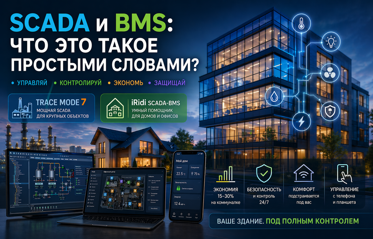 TRACE MODE 7 идеальна для крупных объектов, где нужна максимальная надёжность. iRidi SCADA-BMS — отличный выбор для домов, офисов и отелей, где важны удобство и красивый интерфейс.