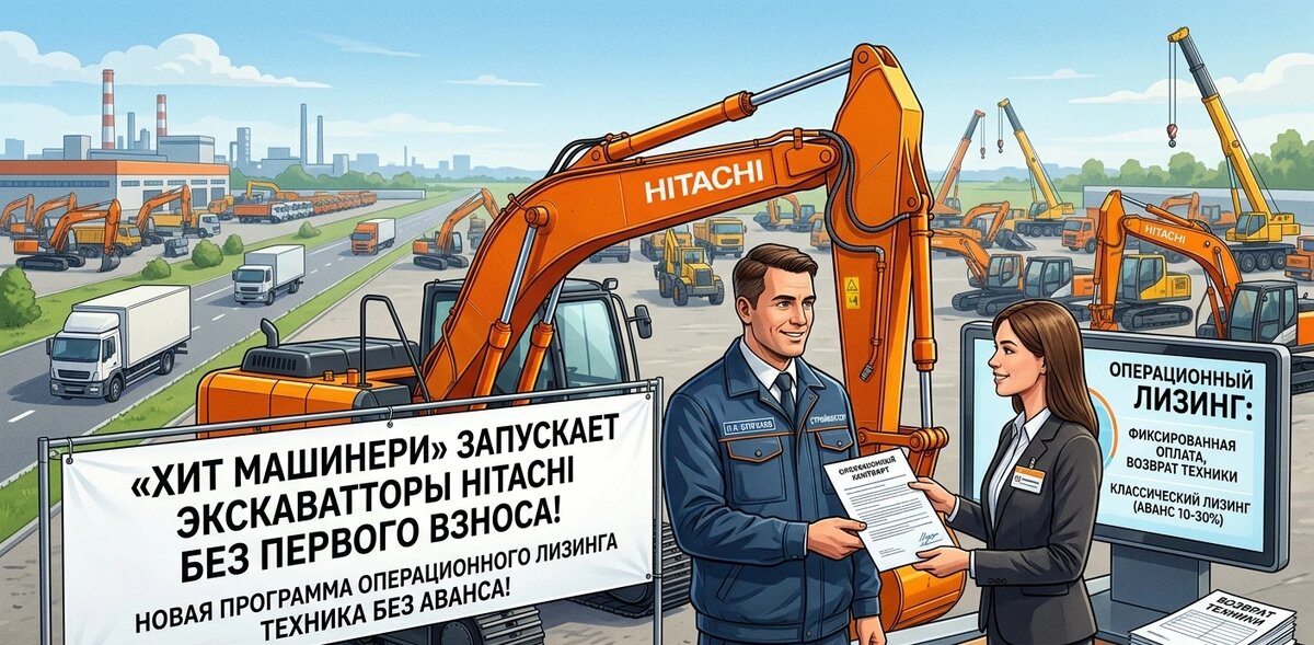 Впервые на российском рынке строительной техники — программа долгосрочной аренды экскаваторов Hitachi без единовременных затрат на старте. Компания «Хит Машинери» запустила операционный лизинг, который может кардинально изменить экономику вашего строительного проекта. Если вы сейчас выбираете между покупкой техники, классическим лизингом и арендой — читайте внимательно. Появился третий вариант, и он работает совсем по другим правилам. В чём суть: операционный лизинг без авансов Всё просто: 🔹 Нет первого взноса. В классическом лизинге это 10–30% стоимости. Для экскаватора за 15 млн рублей — это 1,5–4,5 млн рублей, которые вы теряете в момент подписания. 🔹 Фиксированный ежемесячный платёж. Вы знаете сумму заранее, никаких скрытых комиссий. 🔹 После проекта — техника уходит. Вернули экскаватор, забыли о нём. Не нужно думать о перепродаже, утилизации, остаточной стоимости. Главное отличие от классического лизинга: Кому это реально выгодно? Компании на госконтрактах — нужна техника на 12–