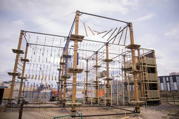 Новая площадка появится в 4-м микрорайоне. Сейчас там собирают трехуровневую конструкцию будущего спортивного комплекса под открытым небом. Для посетителей подготовят несколько трасс разной сложности — с деревянными переходами, канатами, тросами и другими препятствиями. Также откроют скалодром высотой девять метров и зоны отдыха. Парк рассчитан на детей и взрослых. Минимальный рост для участия — 115 сантиметров. За безопасностью будут следить инструкторы, а все маршруты оборудуют страховкой. 📸: ДРГХ Администрации города Кургана Подписаться | Прислать новость | Дать «буст» | Мы в MAX