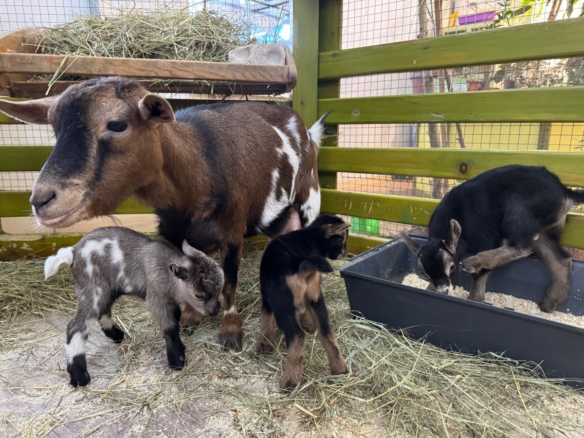 🐑 Не прошло и месяца после рождения козленка Вани, как у камерунских коз родилась двойня. Выбрать имена для малышей предлагают подписчикам. Пишите в комментариях: кличку и масть — черный или пятнистый. Авторов лучших вариантов наградят тремя семейными билетами в этнопарк и детский зоопарк. 📸 МБУДО "Детская Экологическая станция" / ВКонтакте ⛺️ Подписаться | Прислать новость | Мы в MAX