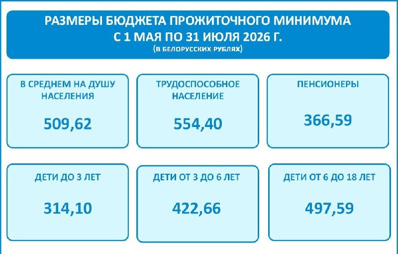 📊 С 1 мая в Беларуси повысят бюджет прожиточного минимума до 509,62 рубля